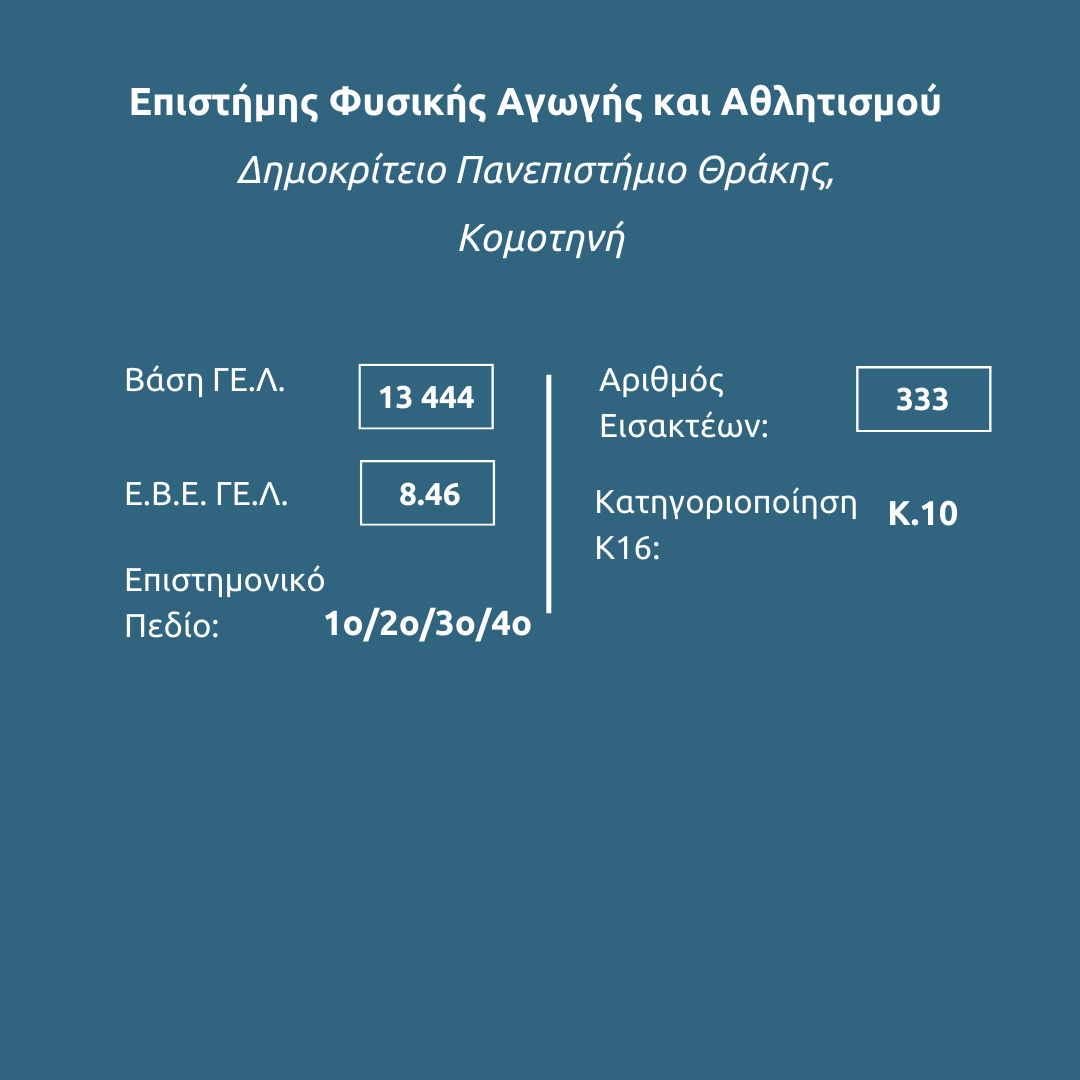 Το Τμήμα Επιστήμης και Φυσικής Αγωγής του Δημοκρίτειο Πανεπιστημίου προσφέρει τις παρακάτω ειδικεύσεις: