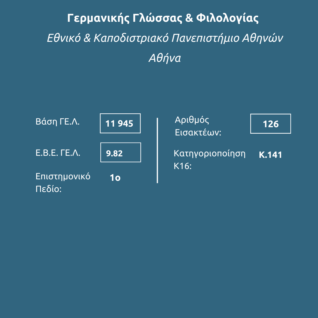 Για τα τμήματα Γερμανικής Γλώσσας και Φιλολογίας απαιτείται εξέταση στο ειδικό μάθημα ΓΕΡΜΑΝΙΚΗ ΓΛΩΣΣΑ