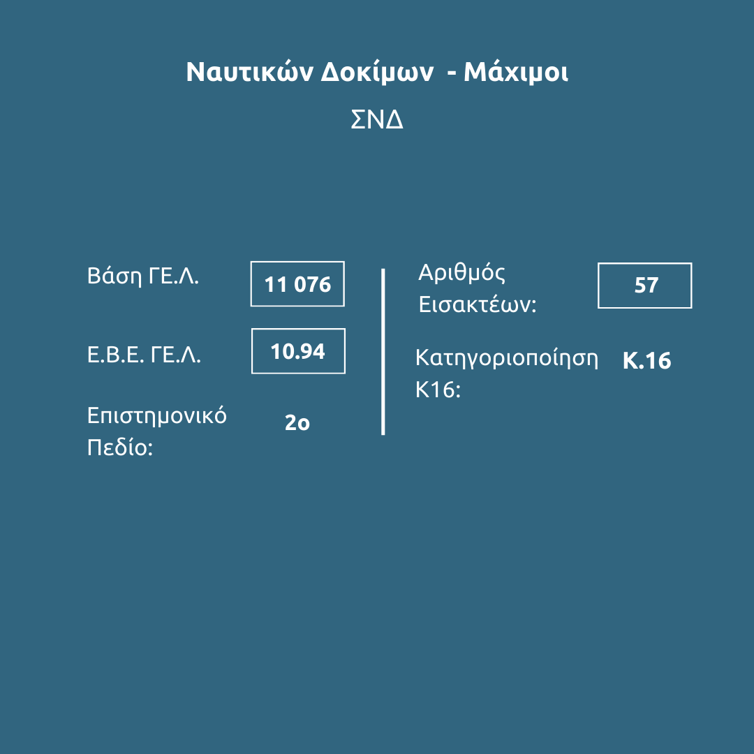 Η κατεύθυνση Μαχίμων της Σχολής Ναυτικών Δοκίμων περιλαμβάνει ενδεικτικά τα παρακάτω μαθήματα :